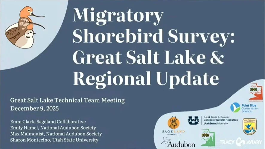 IMWSS IN THE NEWS Check out the most recent stories about the Intermountain West Shorebird Survey efforts below: 2025: Migratory Shorebird Survey Update December 9, 2025, National Audubon Society, Sageland Collaborative,and Utah State University Volunteers at the Heart of the Intermountain West Shorebird SurveyApril 16, 2025, Audubon Washington Great Basin Bird Observatory Winter Lecture Series: Intermountain West Shorebird Survey UpdateMarch 25, 2025, Great Basin Bird Observatory Capturing the story of Shorebird Migration on Great Salt LakeFebruary 25, 2025, Utah Division of Wildlife Resources A Day in the Field with Intermountain West Shorebird SurveyorsNovember 19, 2024, National Audubon Society Wings and Hands: Cultural Connection Through ShorebirdsOctober 3, 2024, Sageland Collaborative Astonishing bird counts at California's dying Salton SeaSeptember 22, 2024, Desert Sun For the First Time in 30 Years, a Bird Census is Being Conducted on the Great Salt LakeAugust 12, 2024, Fox 13, Great Salt Lake Collaborative Wings in a World on FireAugust 1, 2024, Sageland Collaborative The Monumental Effort to Understand Migrating ShorebirdsJuly 2, 2024, National Audubon Society How changes at the Salton Sea might be fueling the smallest migrantsJune 24, 2024, Audubon California A Shorebird Lover’s Paradise at the Salton SeaMay 29, 2024, Audubon California Replicating a Census from the Past to Protect Shorebirds of the FutureFebruary 27, 2024, National Audubon Society Uniting for ShorebirdsDecember 11, 2023, Utah Division of Wildlife Resources Survey counts shorebirds at Great Salt Lake as they begin migrating southSeptember 27, 2023, Utah Public Radio Statewide shorebird surveys restarted after 30-year hiatus; over 84,000 shorebirds counted during spring surveyJune 2, 2023, Utah Division of Wildlife Resources Regional Shorebird Surveys Provide a Look at Changing Habitat Around the WestOctober 27, 2022, Intermountain West Joint Venture